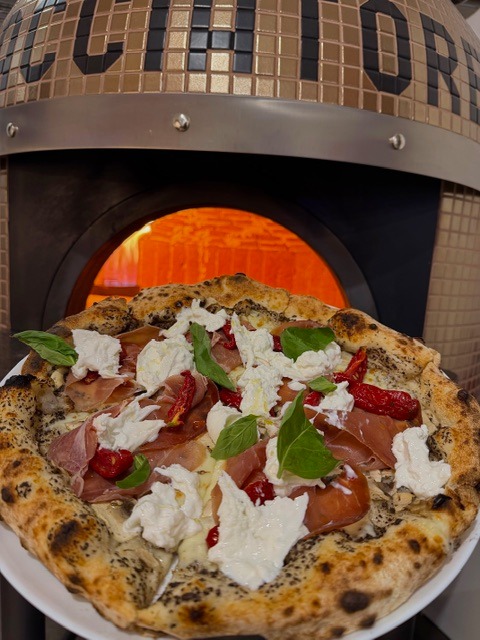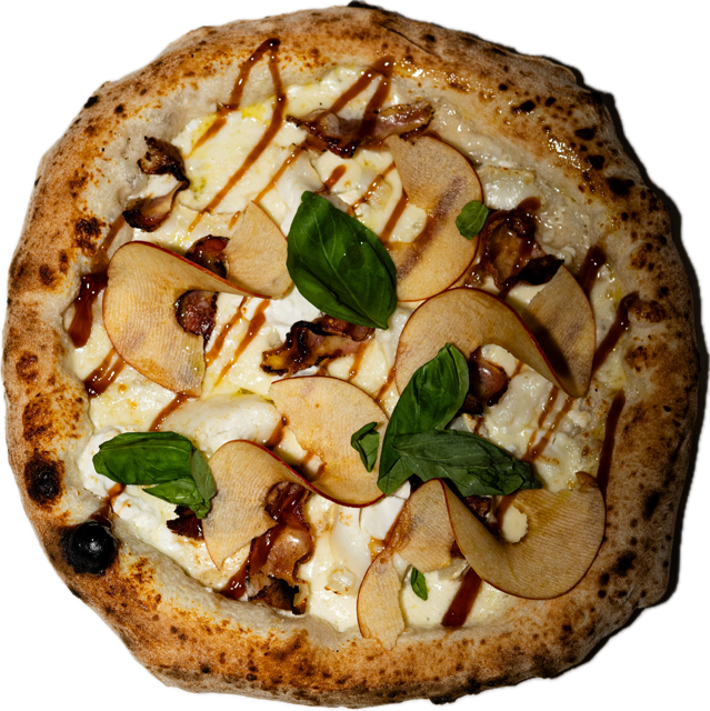 La pizza napolitaine est une spécialité traditionnelle originaire de Naples, en Italie, reconnue pour sa pâte fine, moelleuse et légèrement croustillante, cuite à très haute température avec une moyenne de 400 degrés. La pâte repose longuement avec un minimum de 24h ce qui lui confère légèreté et digestibilité. En bouche, la pizza napolitaine offre un équilibre parfait entre acidité, douceur et fondant.
