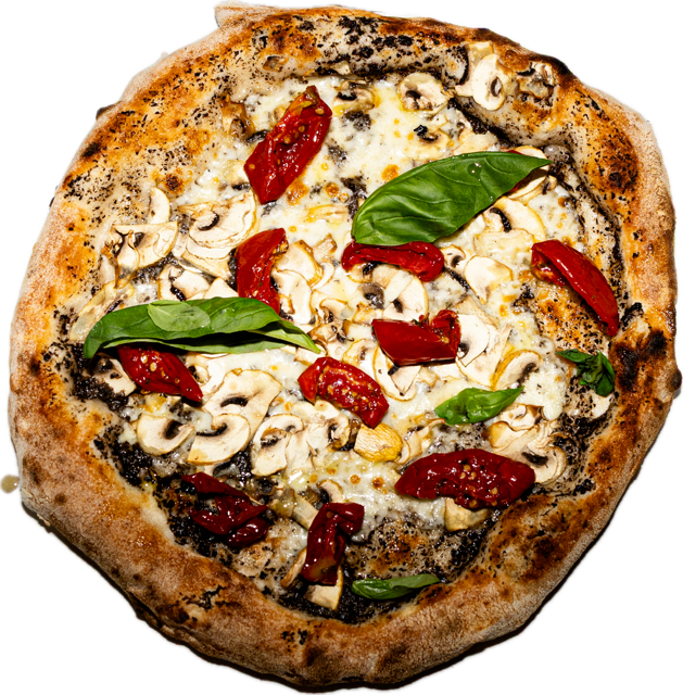 Crème à la truffe, mozzarella, champignons, tomates séchées